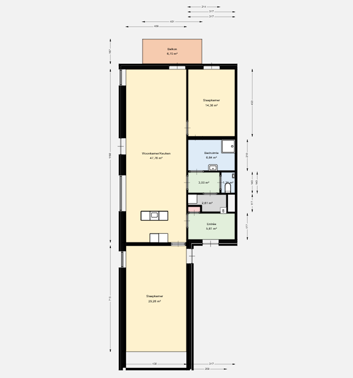 Elk appartement heeft: