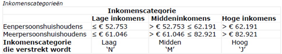 De inkomenscategorieën zijn als volgt;